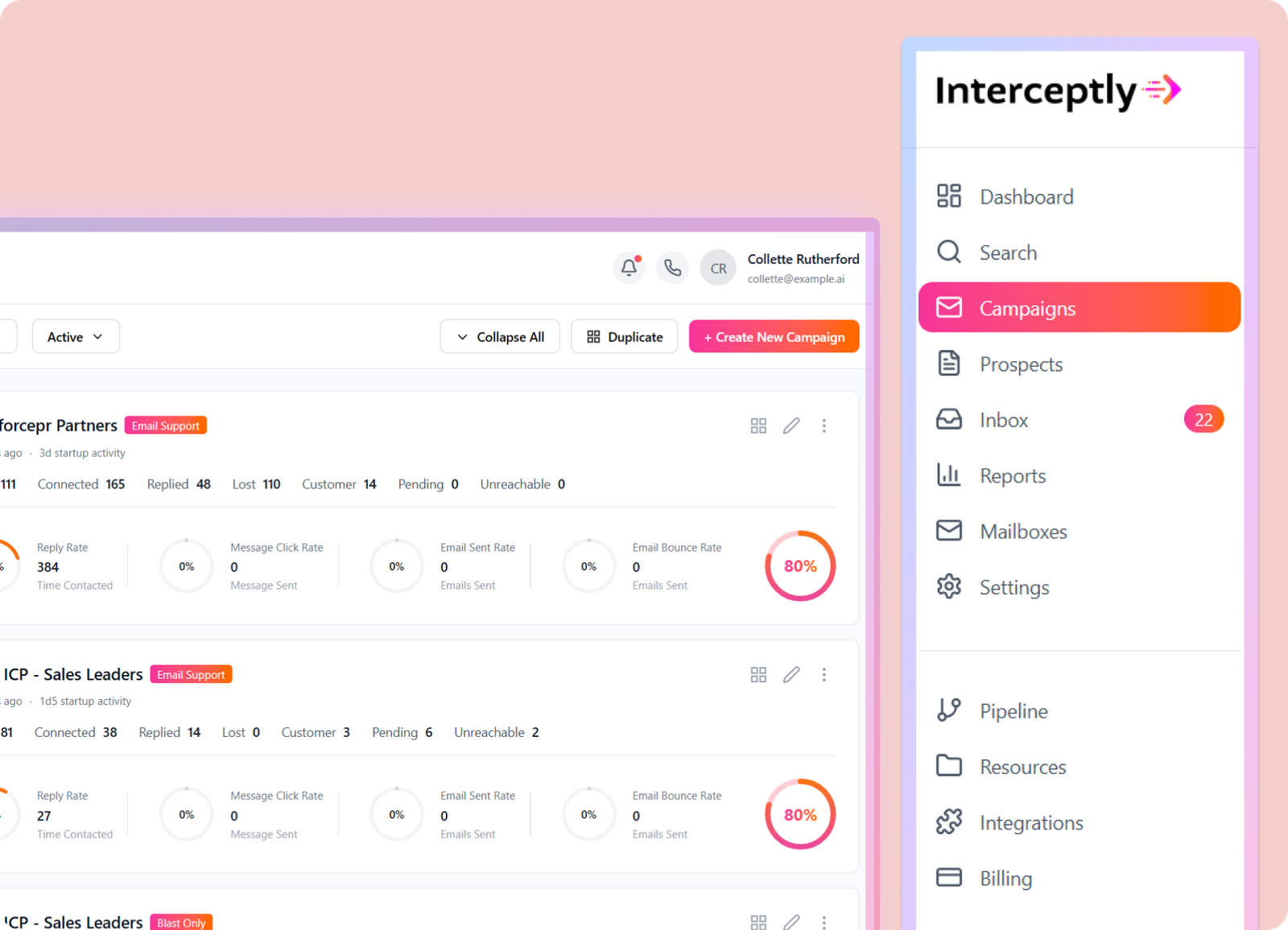 “We’ve closed $400K in revenue and have $1.5M in active pipeline. All from Interceptly campaigns.”