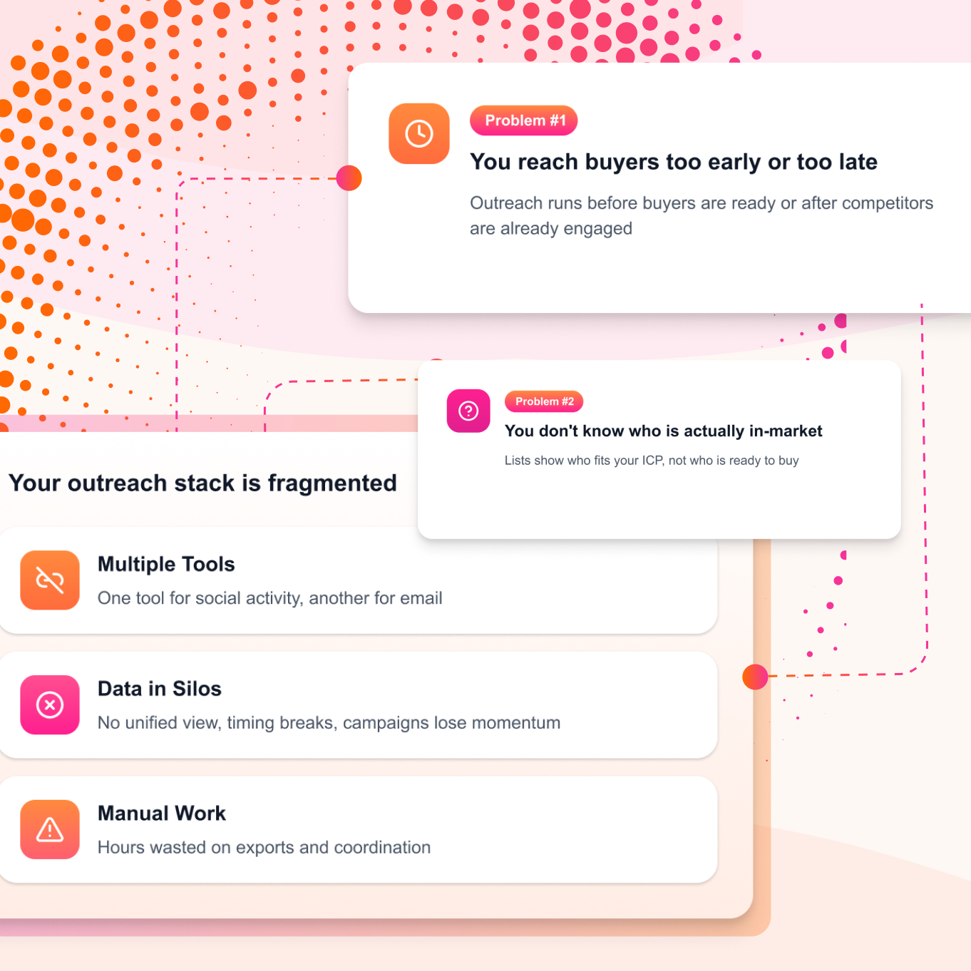 Outreach runs before buyers are ready or after competitors are already engaged. Without clear in-market signals, teams guess on timing and miss real opportunities.